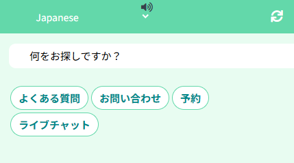 スタッフ側の準備は、チャットボットサイトにログインするだけです。ボットのスタートメニューに、ログアウト時にはない「ライブチャット」のボタンが表示されます。